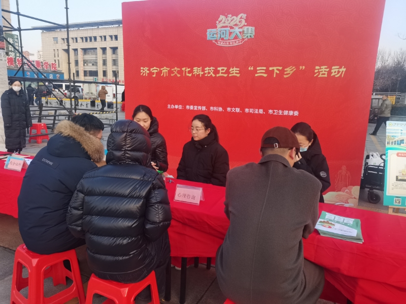 2月7日上午,2026“相约济宁过大年·迎新春消费季”暨“运河大集”新春季在济宁全民健身广场正式启动。为切实守护辖区居民身心健康,传递新春温暖,济宁任城心理医院、智善儿童康复医院联合多家兄弟志愿团队,组建专业服务队伍,在大集现场开展心理咨询、医疗义诊、体卫融合科普等多元化健康服务,将优质医疗健康资源送到居民身边,让年味里多了一份健康守护。