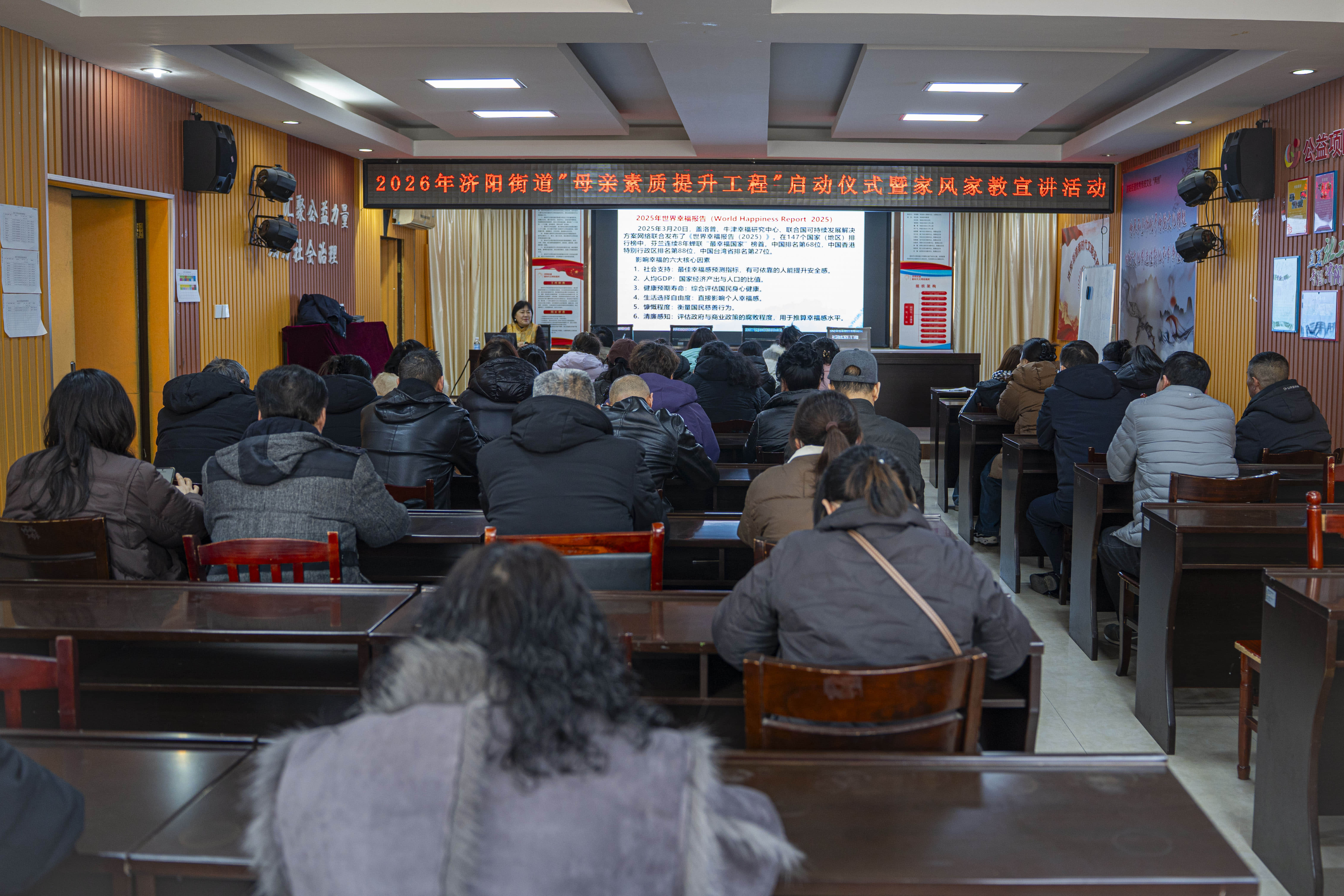 下午16时许,2026年济阳街道“母亲素质提升工程”启动仪式、家风家教宣讲暨三八国际妇女劳动节心理讲座如期开讲。为帮助现场女性深刻理解家庭家教家风建设对个人成长、家庭和谐、社会进步的重要意义,进一步明晰中国式幸福的丰富内涵,赵洁教授以《马年吉祥 幸福启航》为题,从文化基因层面展开剖析,梳理了儒释道文化中“修行成就、社会关系、内在修养”的幸福内核,解读了明清经典著作中“情感意愿、关系互动、生活日常”的幸福表达,以及当代网络环境下“关系联接、自我成长、情绪表达”的幸福新形态,总结出中国式幸福是“辩证的幸福、融会的幸福、境界的幸福”的核心观点,让现场女性在中华优秀传统文化的浸润中,深化对幸福的认知与理解。