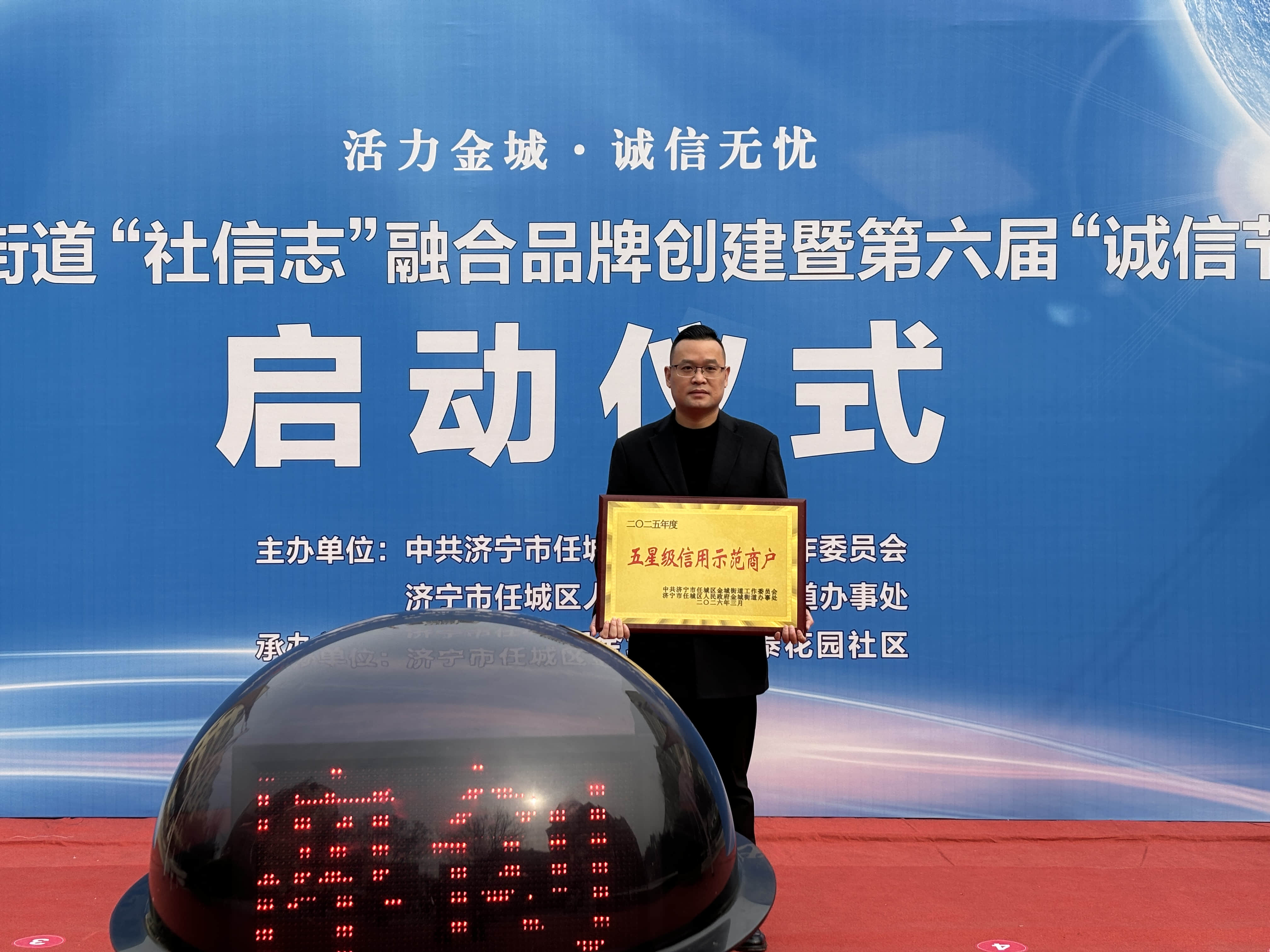 为树立诚信标杆、弘扬诚信风尚,仪式上对诚信经营、积极履责的商户进行表彰,济宁任城心理医院被授予“五星级信用示范商户”称号,该院副院长、工会主席黄云龙上台接牌,现场响起热烈掌声。
