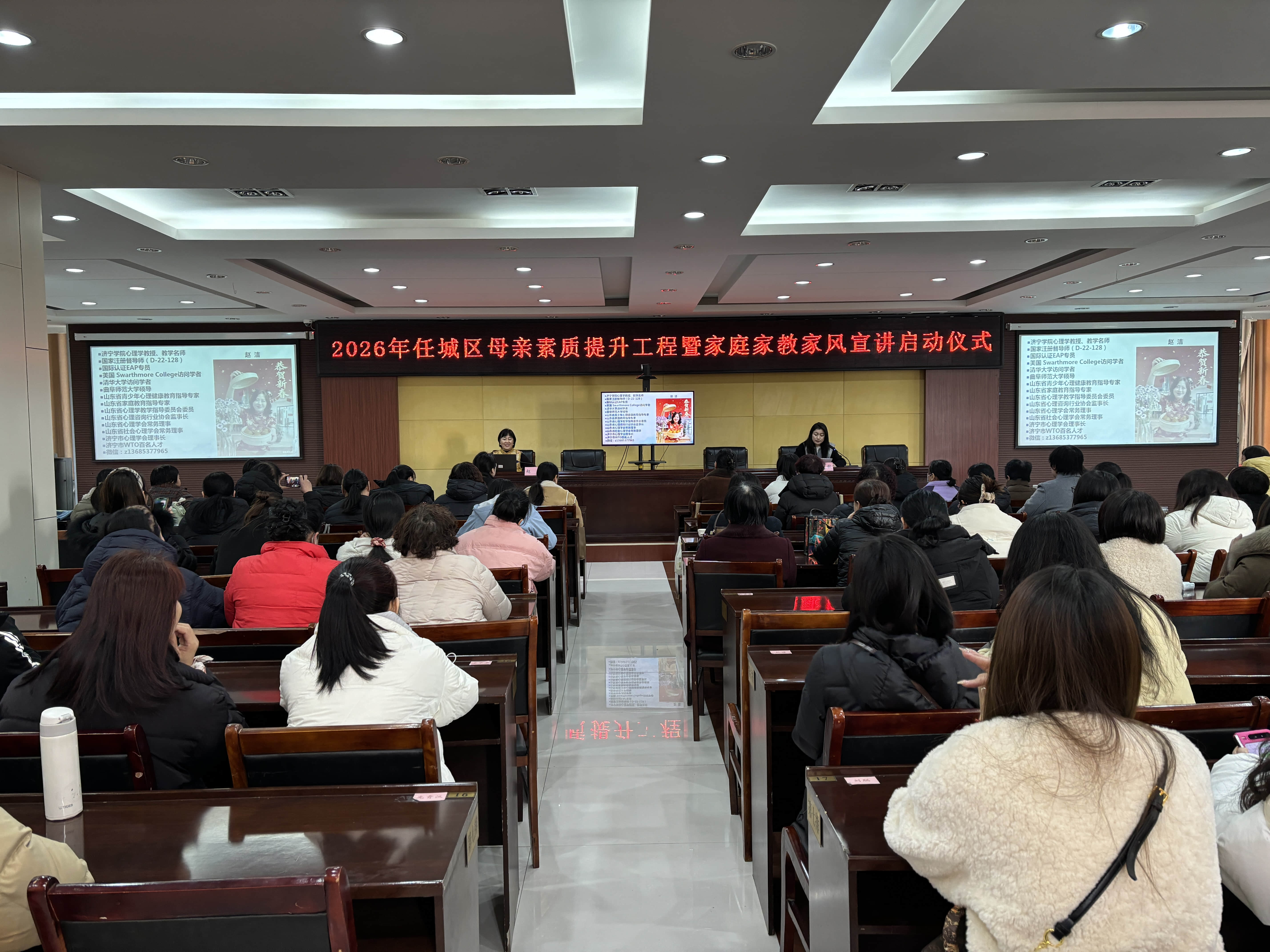 在第116个“三八”国际妇女劳动节来临之际,为深入推进“母亲素质提升工程”,切实关爱女性心理健康,帮助广大女性缓解生活与工作双重压力,赋能女性成长成才,3月6日,任城区李营街道、济阳街道妇联精心策划并举办三八国际妇女劳动节心理讲座活动。活动特邀济宁学院心理学教授、教学名师,济宁市心理学会理事长,智善儿童康复医院特聘专家赵洁教授先后主讲,助力辖区女性以更饱满的热情、更阳光的心态、更健康的体魄建功新时代。